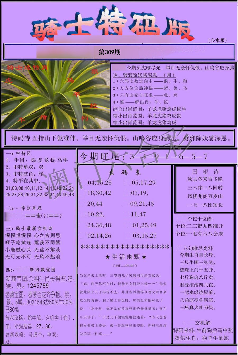 309期绝杀中特【羊肖-2头-6尾-双数】开?00 |