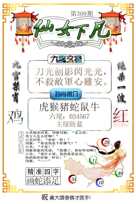298期:绝杀三尾【4 0 6】开:羊11 |