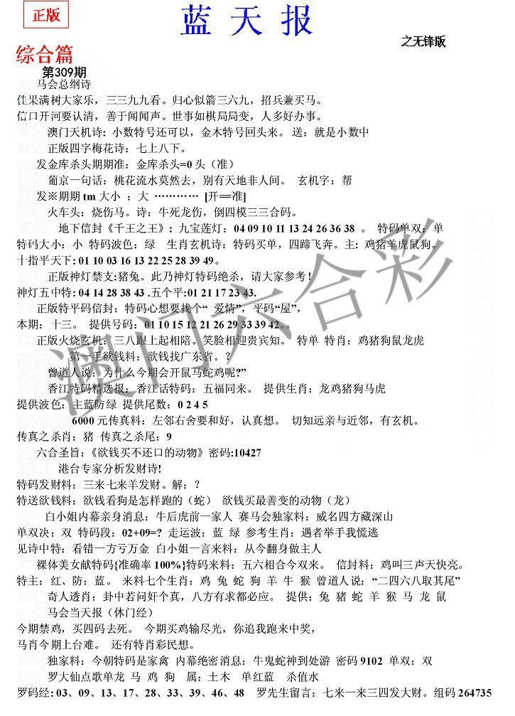| 303期〖⑥码〗30 48 42 02 26 18 |