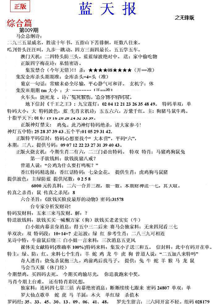 009期双波中特【红蓝】开?00 |