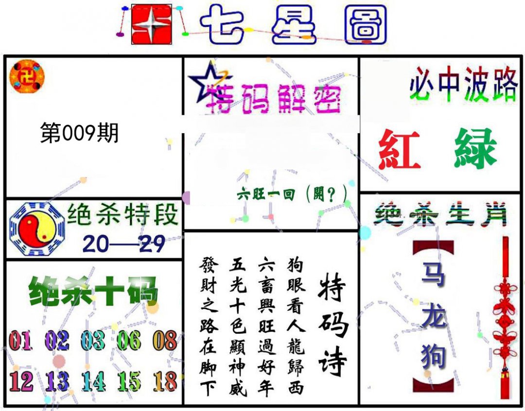 006期:复式连肖【猪龙狗虎马羊】 |